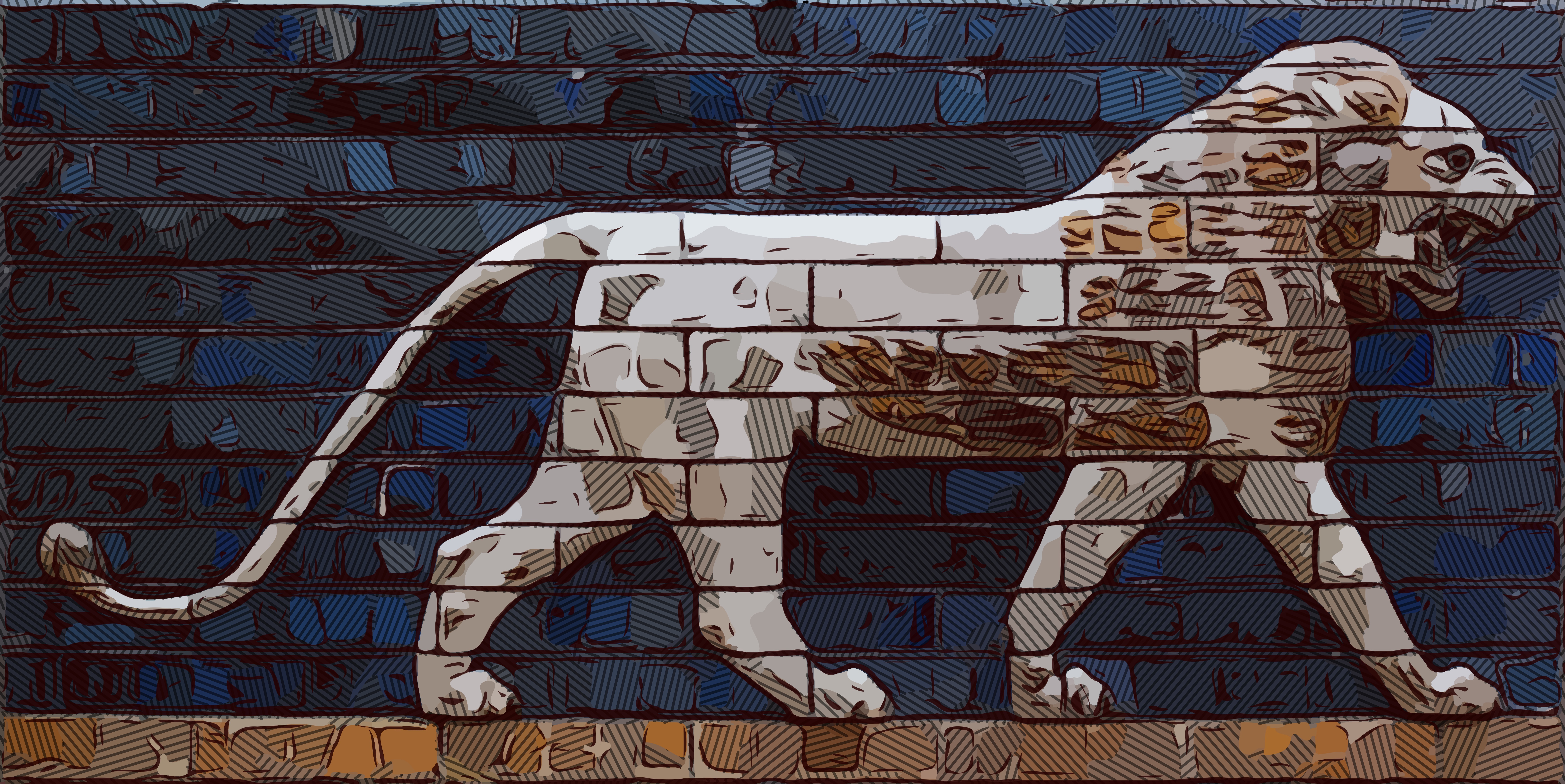 The widest and most beautiful of the eight gates of Babylon was the Ishtar Gate, which was covered in a blue lapis gaze and decorated with images of lions and bulls. This opened onto a broad central avenue along which great processions would pass during festivals.