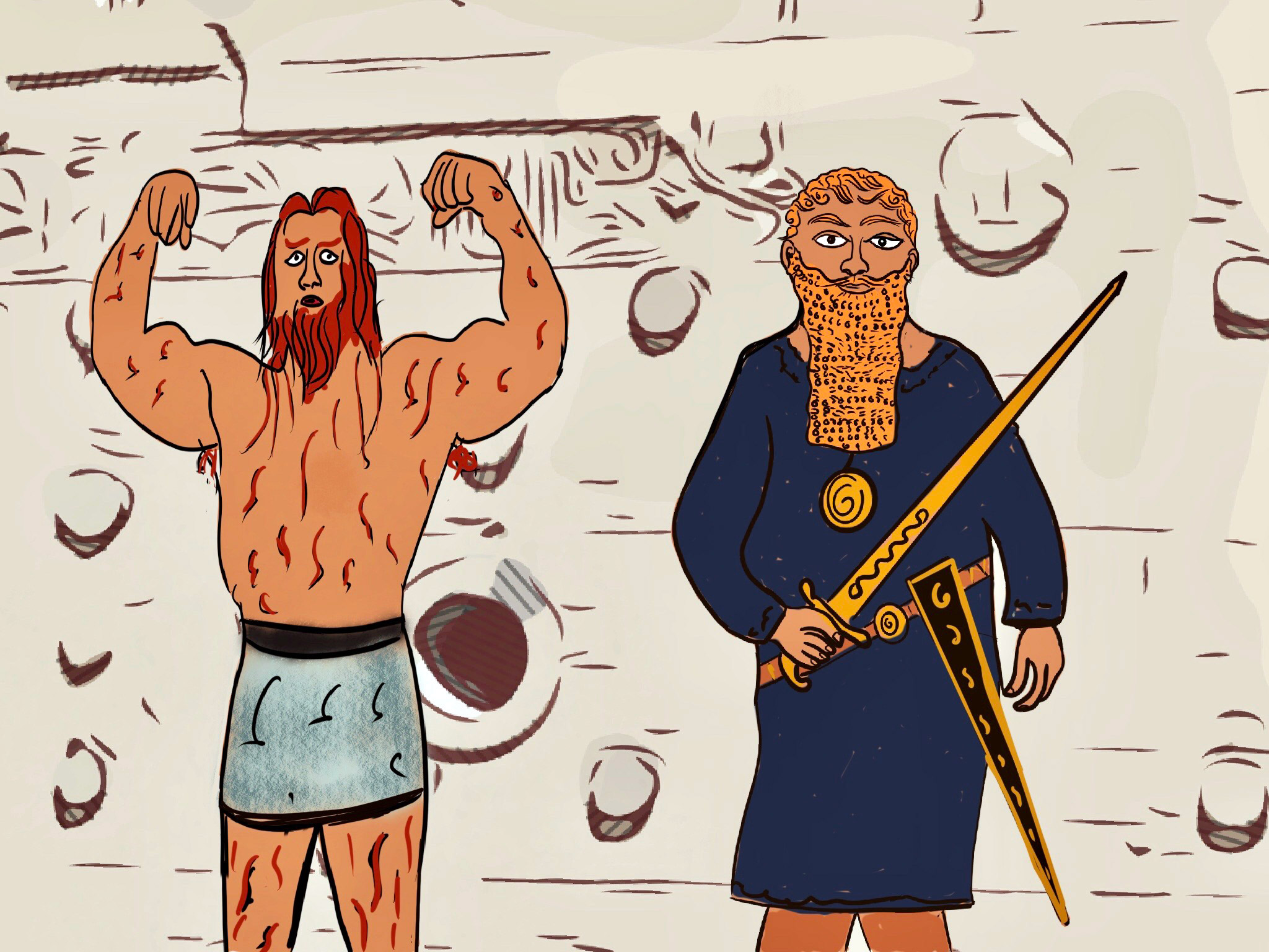The two men, as mighty as thunderbolts of Anu, began to fight. The door frames of the great city of Uruk shook, and the mighty walls trembled. They fought and they grappled, they pushed, and they shoved, and they punched, they wrestled, and they clawed, and they bit and they scratched. In the end, Gilgamesh, who was two-thirds god and one-third human, proved that he was the strongest, but only just.
