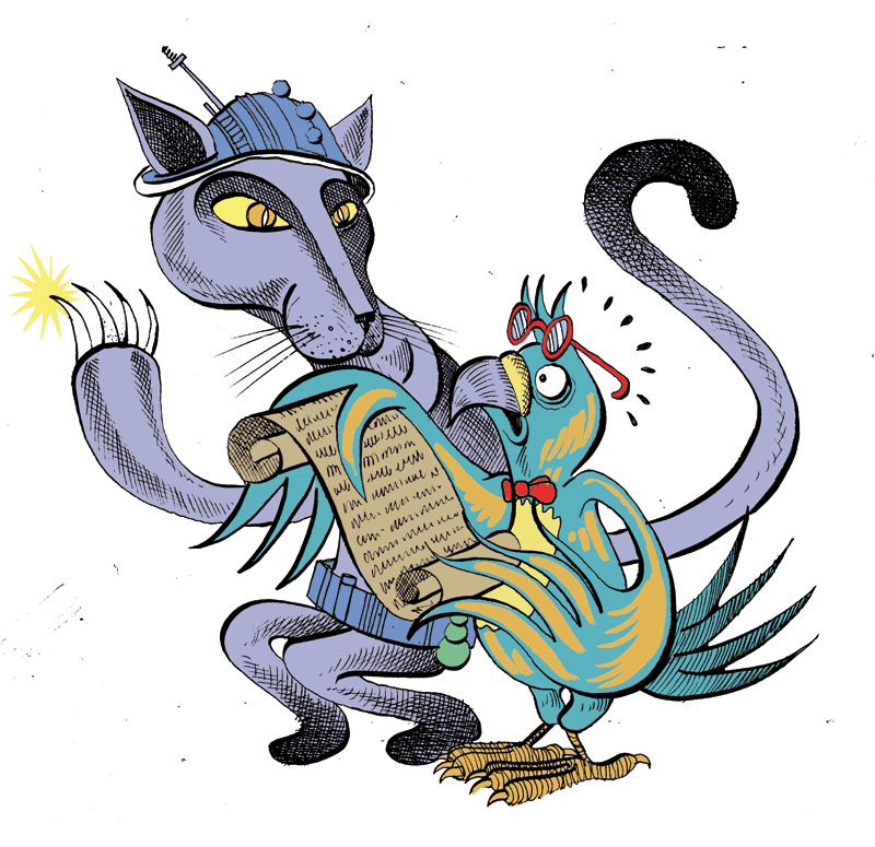 “Put the guns on the ground over by that tree,” said the Parrot. “Or the deal’s off.” And after some meowing and complaining the pair did as he said.