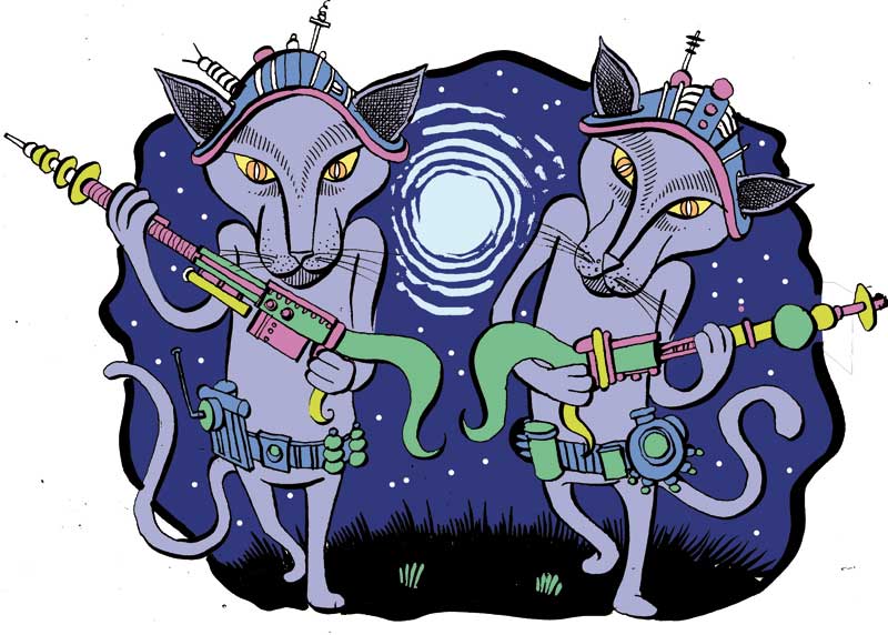 “Grrrrrrrrrrr,” I said. I couldn’t help myself. And both the cat people raised the laser guns that were strapped across their chest.