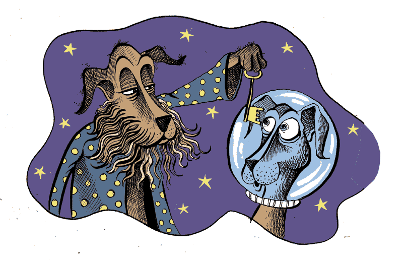 I had this moral dilemma while on a routine mission to the moon. As you know, by the standards of the Universe, it’s little more than a skip and a jump to the moon – a mere 240,000 miles. The humans gave me a special probe to take there. It was a gizmo that measured moisture, and temperature, and ultra-sonic thingies, and solar whatnots, and all sorts of clever stuff. Some smart-alec scientist made it in the shape of a bone to encourage me to bury it. My comrade the Parrot, who came along with me, thought that was very funny.