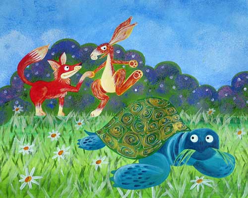 Then that wily old fox said: “I’ll lay a bet that the tortoise can beat you in a race. Not a quick dash of course. He’s hardly a sprinter – but a proper race over a good distance. Say, up to the top of that hill and back. I don’t believe you’ll beat him in a race like that.”