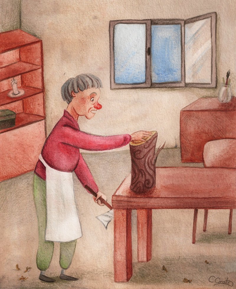 I do not know how this really happened, yet the fact remains that one fine day this piece of wood found itself in the shop of an old carpenter. His real name was Mastro Antonio, but everyone called him Mastro Cherry, for the tip of his nose was so round and red and shiny that it looked like a ripe cherry.