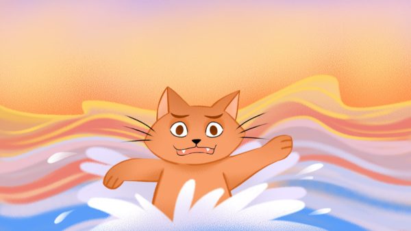 The night before the contest, the rat went to see his best friend the cat to discuss the race. They both agreed that the contest was unfair to them, as both of them hated water, and neither were strong swimmers.